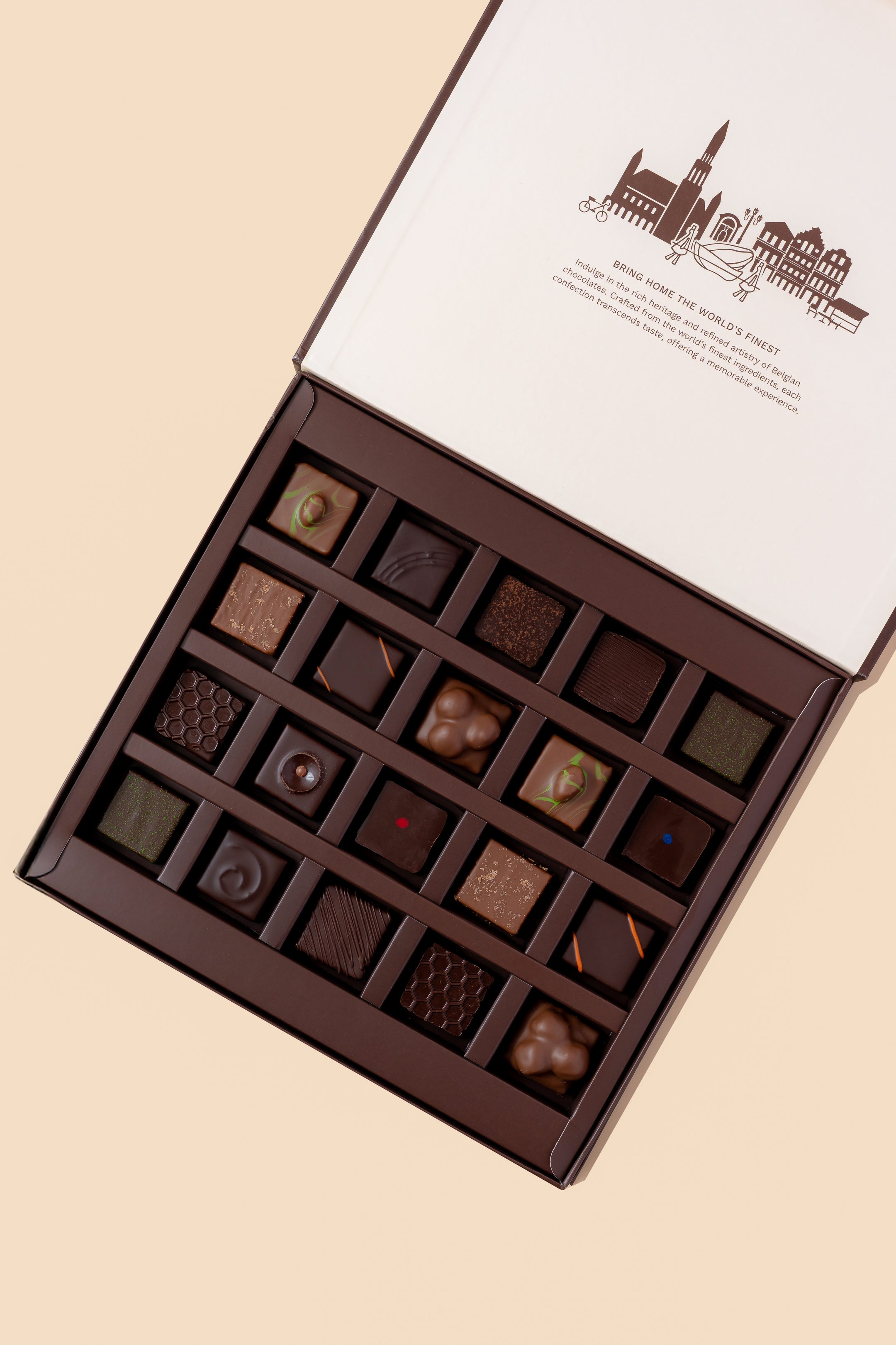 A suggestion: go for the Box of 20 Ganaches if you want variety + sophistication, or the Mandarin Bergamot bar if you want something signature and unforgettable
