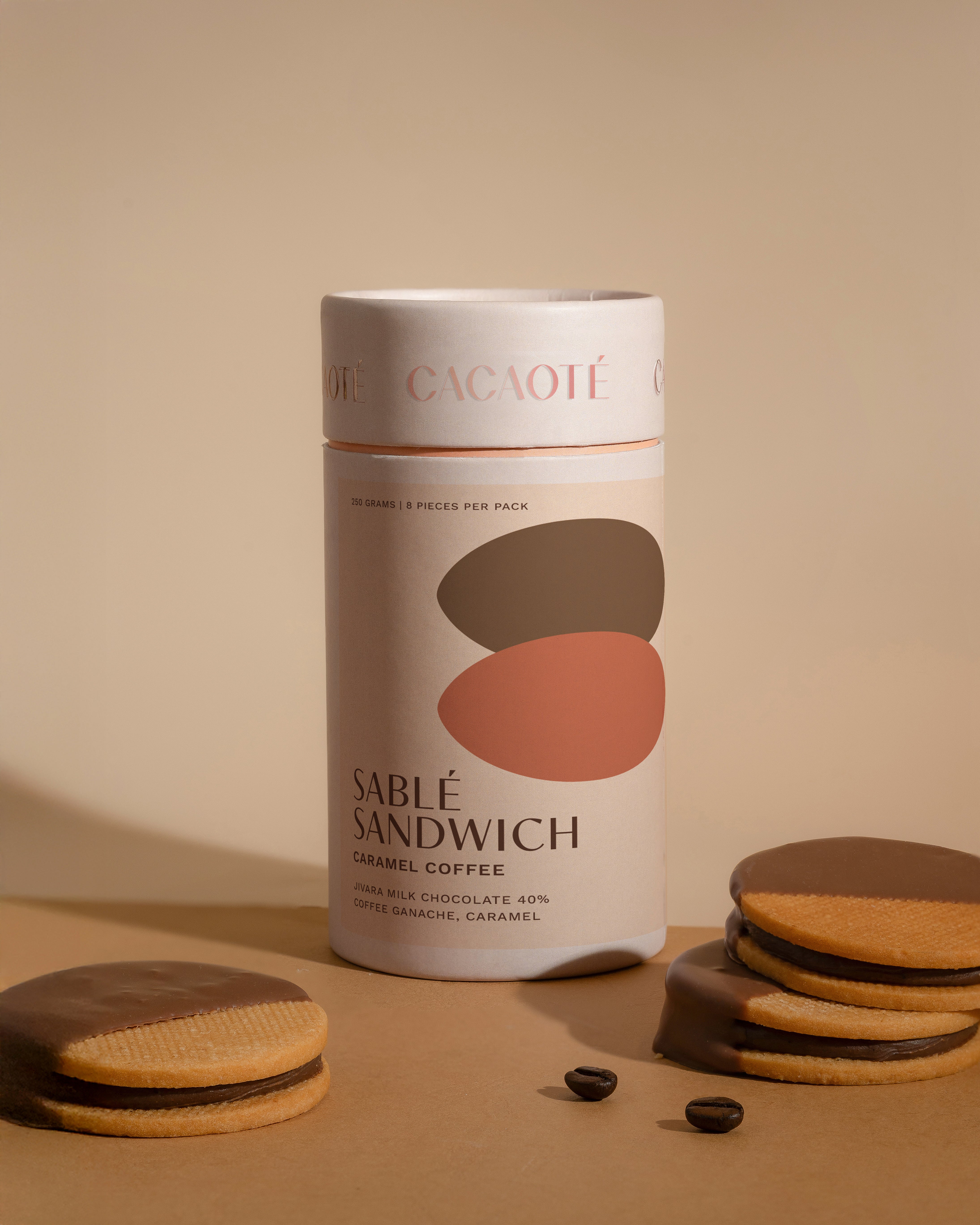 Coffee and chewy caramel encased between 2 french Sable biscuits for a perfect crunch