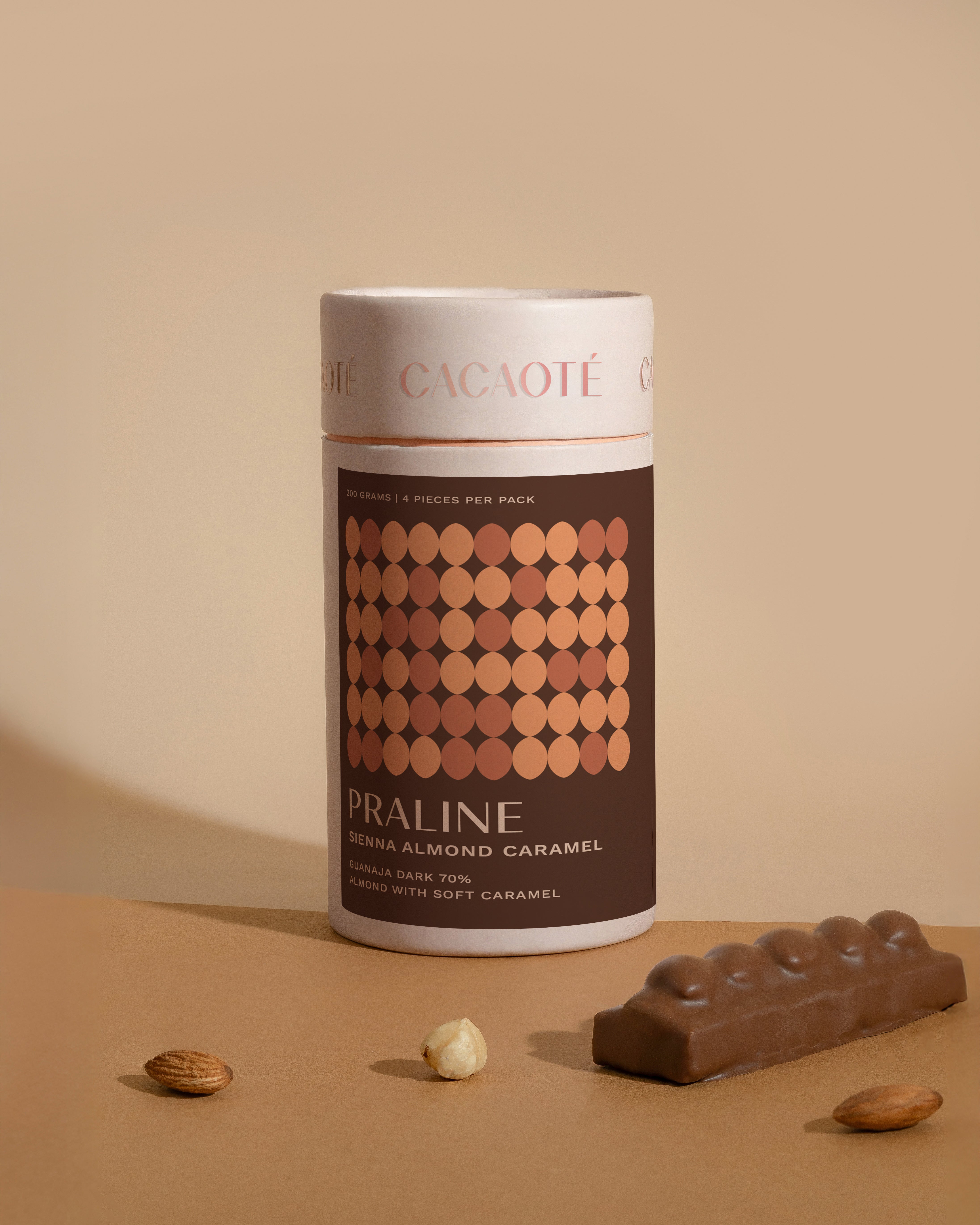 Dark Chocolate 70% with Almond Praline, soft caramel and Caramalised Almonds