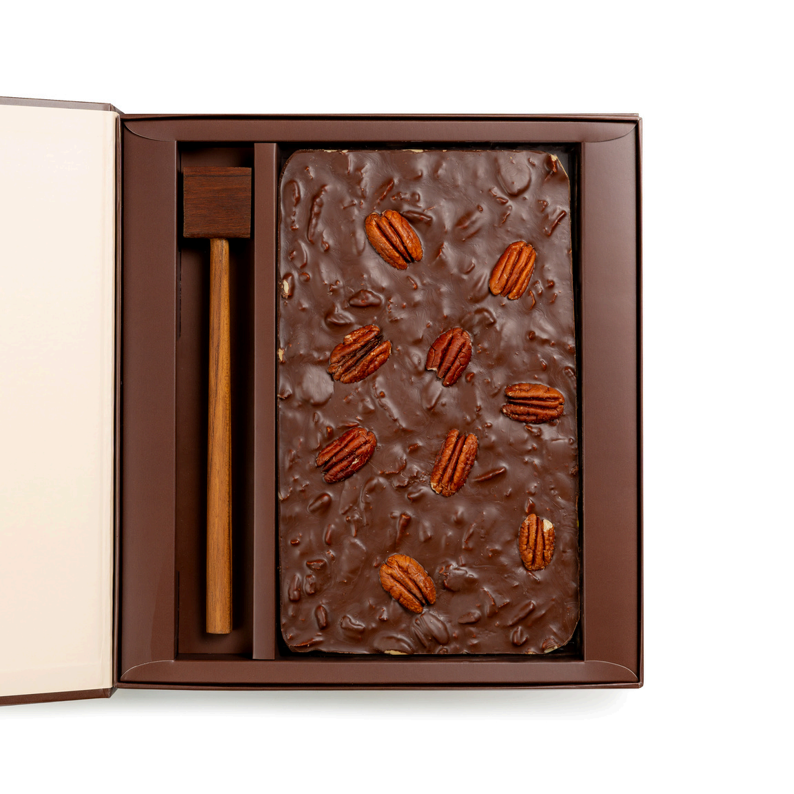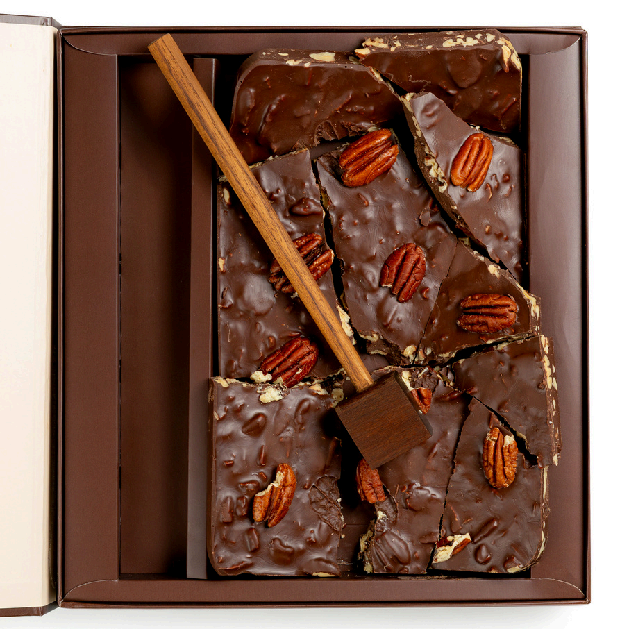 Decadent dark chocolate layered with toasted pecans, delivering a buttery crunch with every rich, velvety bite.