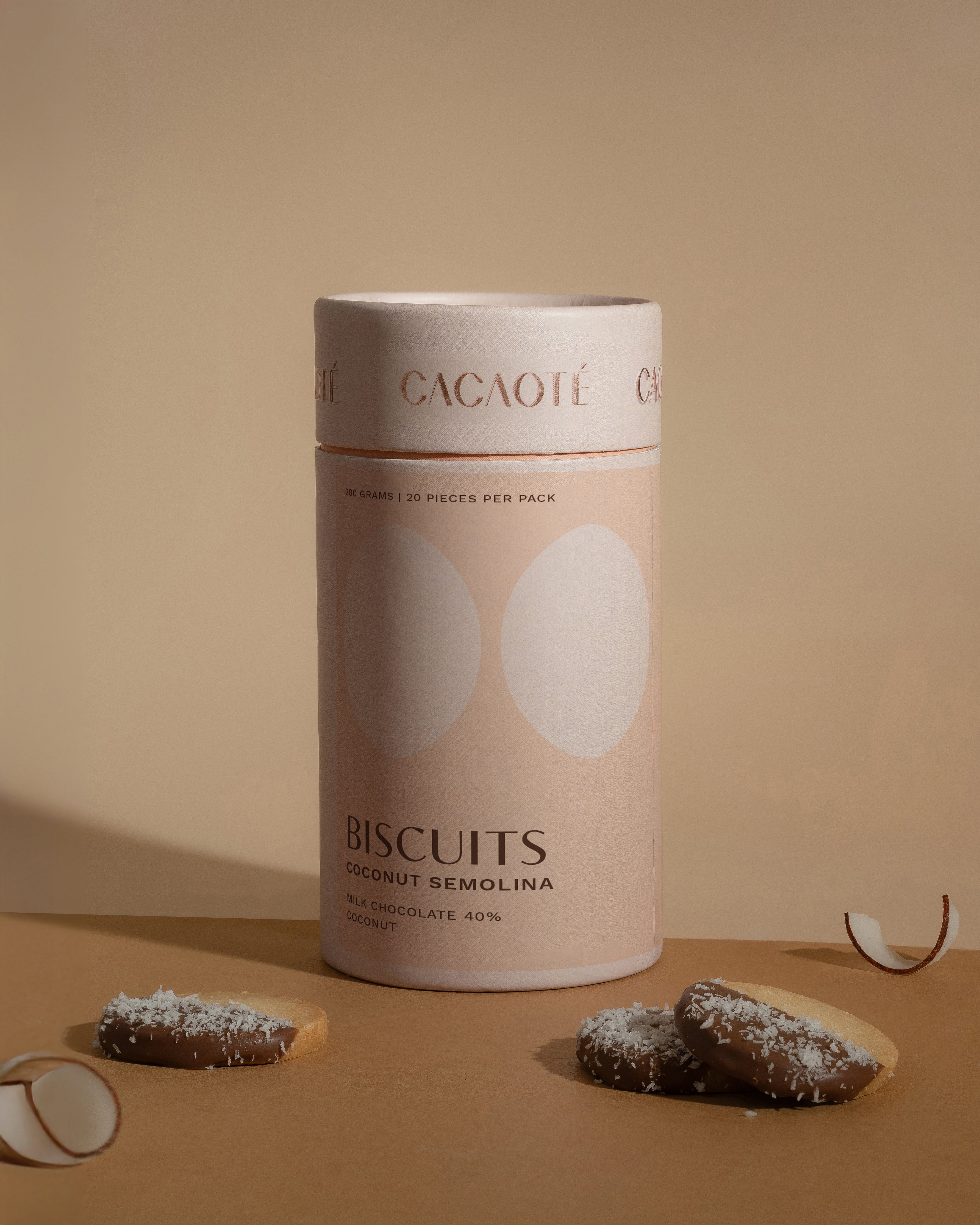Coconut-infused semolina cookie wrapped in smooth 40% milk chocolate.