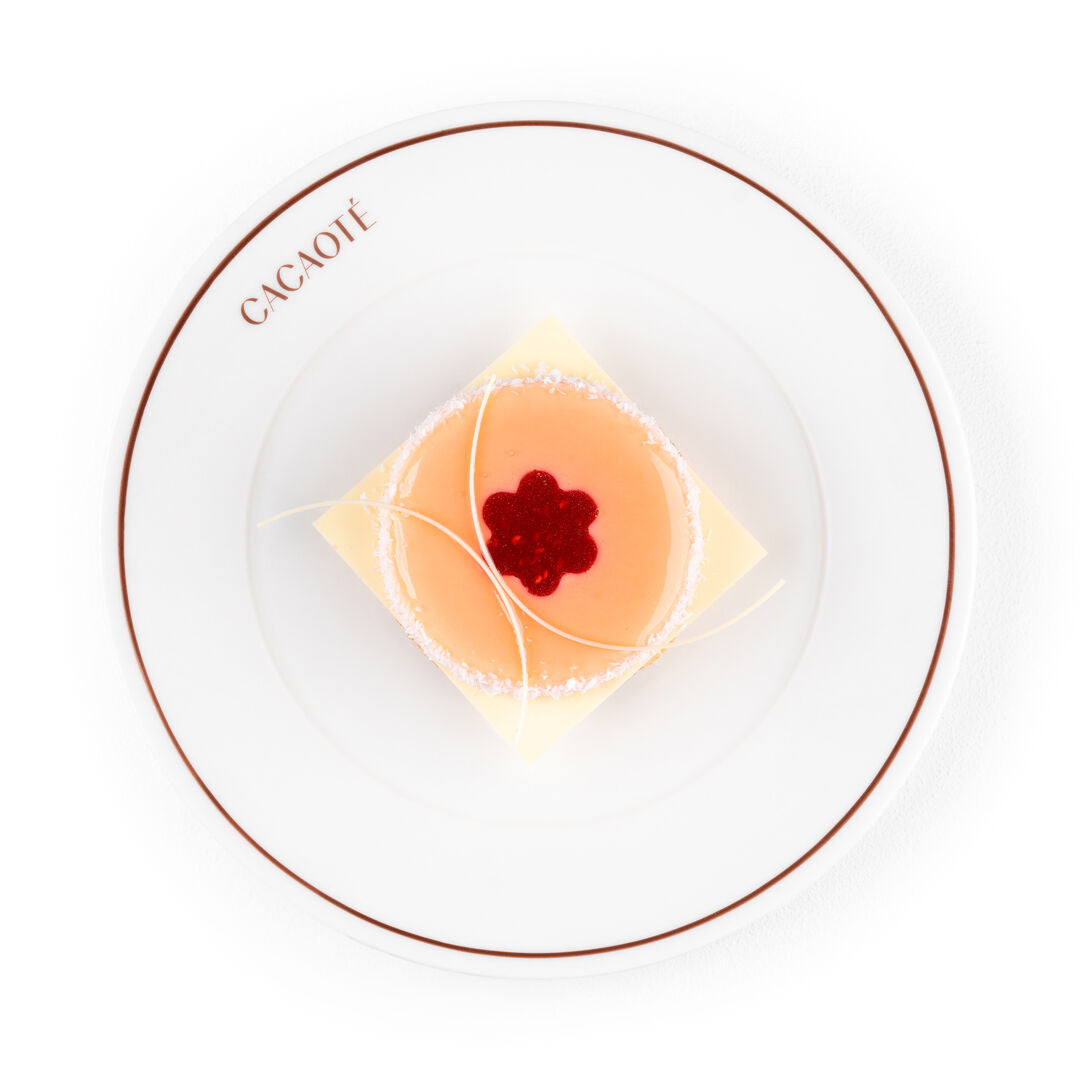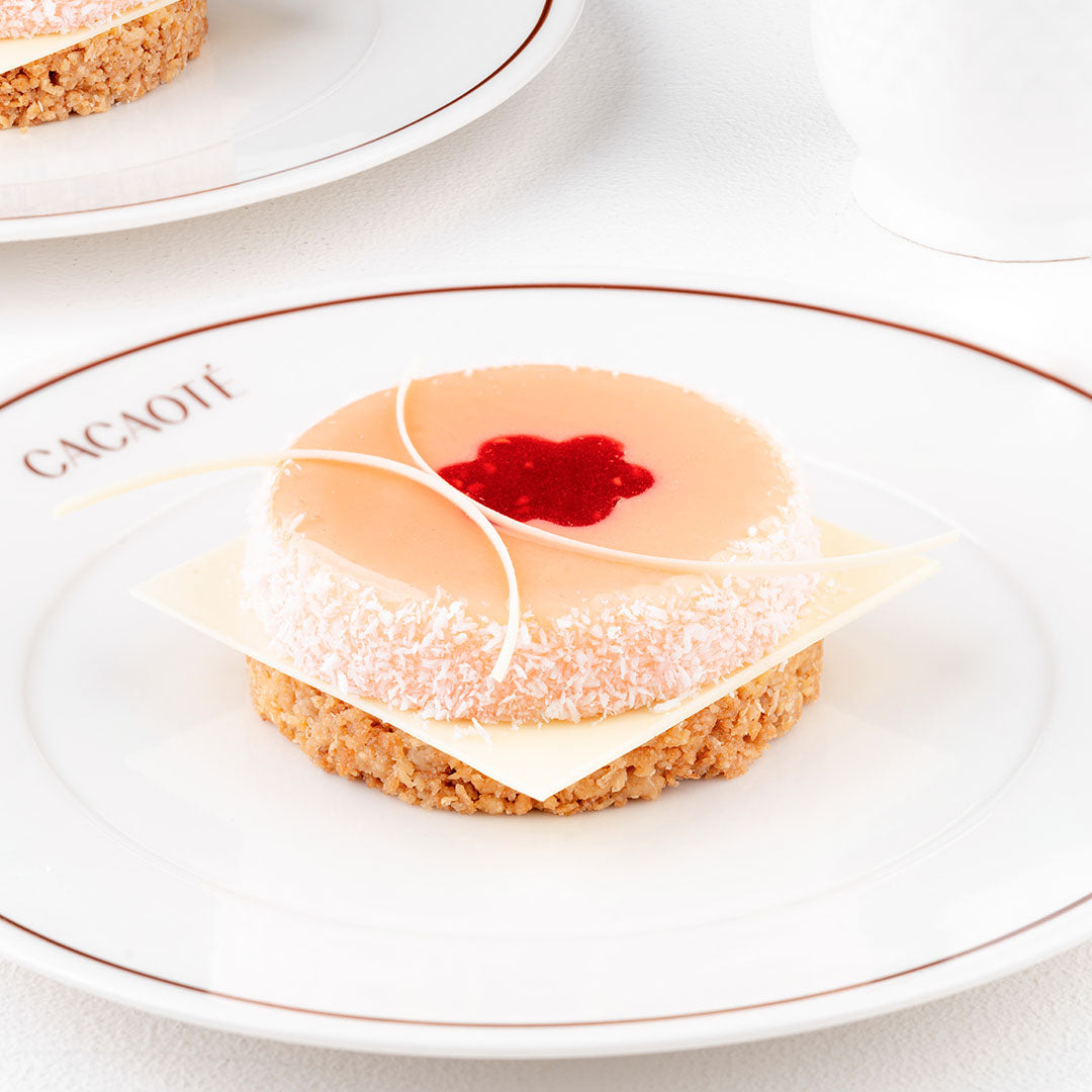 A tropical creation, the Raspberry Coconut Dream features a crunchy coconut streusel base with smooth coconut cream, layered with a hint of coconut confit. Perfectly balanced for coconut lovers, it’s light, creamy, and full of flavour.