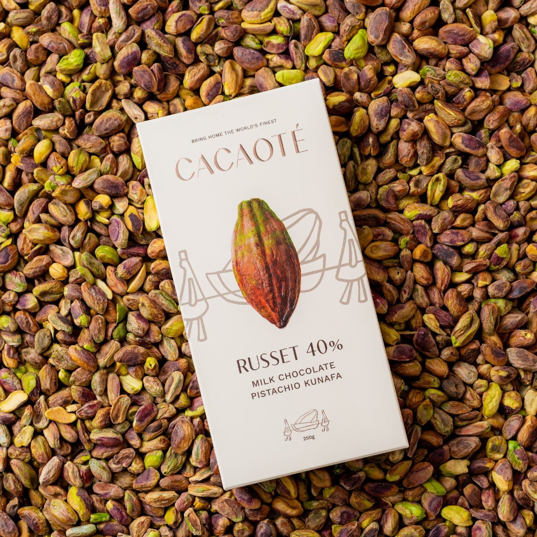A luxurious fusion of creamy milk chocolate, crisp kunafa, and roasted pistachios — a festive flavor inspired by Middle Eastern delicacies.